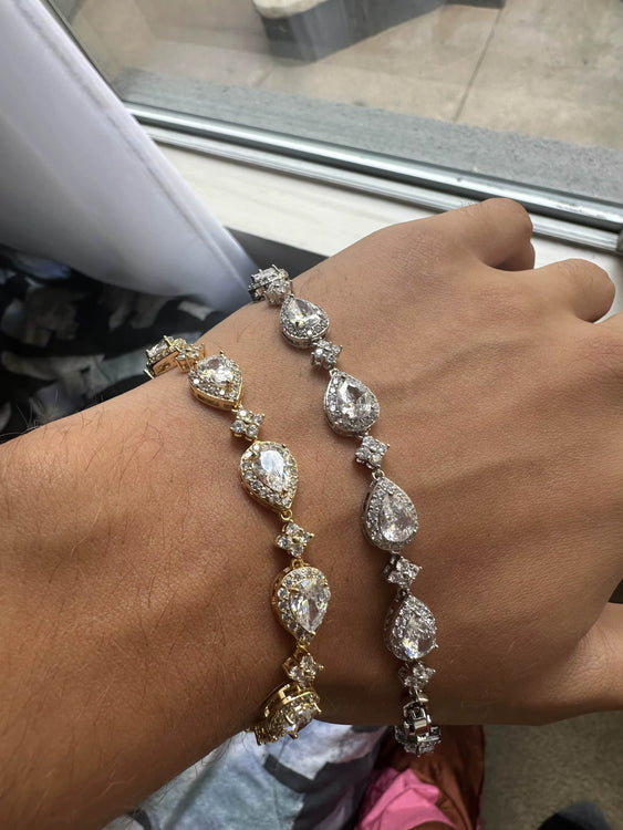The AAA Zircon stone made Tear Drop Bracelet that adds a pinch of flavour to every outfit. Made to be the perfect gift for your friends and family who want that extra bit of sparkle in every season whether its summer or winter, always stay looking fresh.