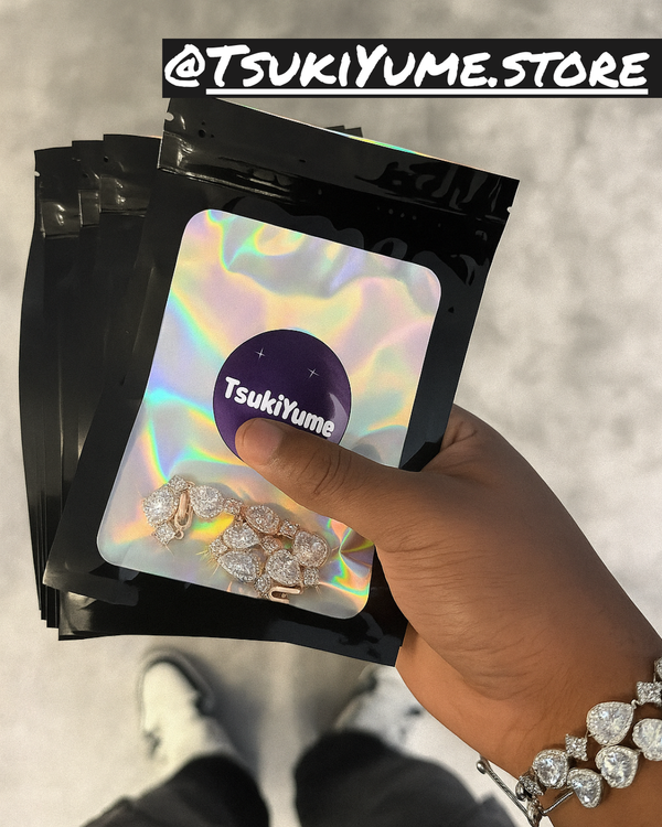 TsukiYume is crafted from high-quality metal alloy with a polished finish available in silver, gold, or rose gold plating.